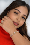 Una joya que captura la esencia de la elegancia y la pasión en cada detalle. Su delicado diseño combina el brillo del dorado con intensas piedras en tonos rojos y verdes, creando un contraste sofisticado que realza la muñeca con luz y carácter. Femenina, refinada y atemporal, es la pieza perfecta para quienes aman destacar con sutileza y estilo. Ideal tanto para ocasiones especiales como para elevar cualquier look diario, esta pulsera no solo complementa tu outfit… lo transforma.